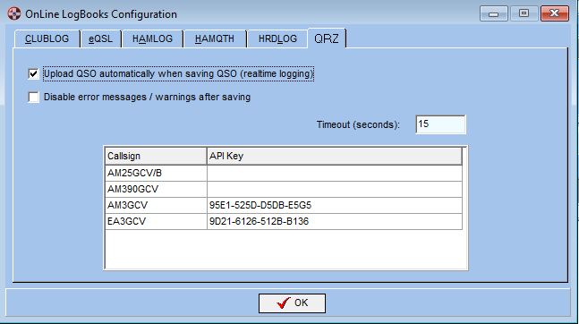 IMPORTANT: In order to save QSO in realtime in your QRZ Account you have to be a QRZ subscriber. This feature doesn't work for free users.